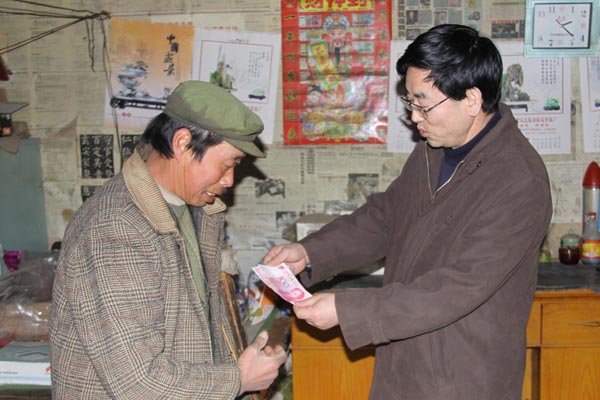 刘来生一行先后深入武山县榆盘乡四湾村、梁沟村、榆盘村等村与所帮扶的困难群众促膝交谈,嘘寒问暖,了解他们一年来的生活情况、粮食收成、经济收入等。并对他们送去了春节的慰问,每家送去了一袋大米、一桶食用油和200元现金。
