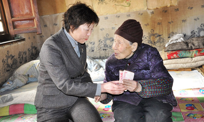 在高龄老人汪玉娥家中,由于年龄大,老人听力不好,温利平便拉着老人的手,凑到老人身旁,亲切地询问老人的身体状况、生活情况。汪玉娥老人意会了县领导对她的关心、慰问之情,高兴地回答说,她赶上了好时代,生活很好,感谢党委、政府的关心和照顾。
