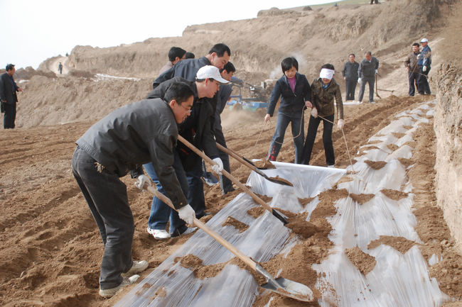 武山县机关干部下基层帮助群众抢墒覆膜(组图)