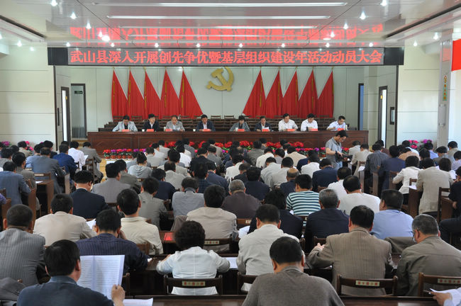 5月10日,武山县召开深入开展创先争优暨基层组织建设年活动动员大会,会议贯彻落实了中央和省、市创先争优活动动员大会精神,全面动员、安排部署了全县深入开展创先争优活动和基层组织建设年活动。