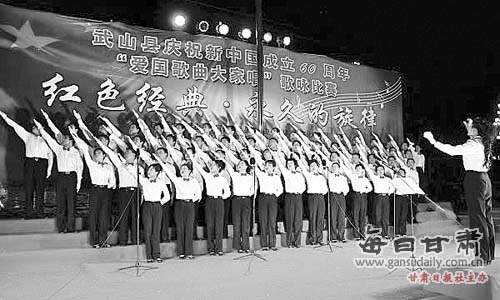 干部群众参加爱国歌曲大家唱活动。