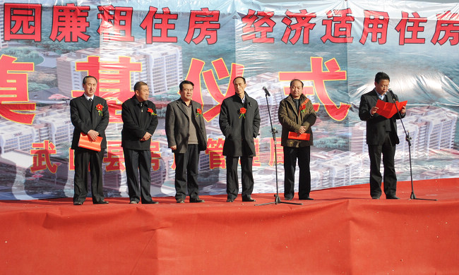 12月8日,武山县隆重举行安康嘉园廉租住房和经济适用住房项目开工仪式,市住房和城乡建设局党委书记、市房地产管理局局长彭德祥宣布工程正式开工,县长张建杰作重要讲话,县政协主席颉卫星、县人大副主任邓茂宗及县直有关部门、施工单位和监理单位负责人参加了开工仪式。仪式由县委常委、副县长高翔宇主持。