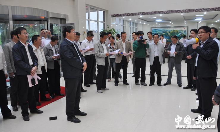 张建杰说,和蓝田一样,武山有着悠久厚重的历史文化,丰富独特的资源优势和别具特色的旅游品牌,是全国绿色农业示范县、国家级蔬菜标准化示范县、全国首批设施蔬菜标准园创建县、全国科技进步先进县,素有“中国韭菜之乡”、“全国武术之乡”、陇上“书画之乡”、“玉器之乡”的称誉。近年来,武山县委、县政府抢抓各种机遇,充分发挥矿产、水力、旅游、人力四大资源优势和便捷的交通区位优势,深入实施“11253”区域发展战略,经济社会保持了持续快速发展的良好态势。但是与蓝田相比,还有不小的差距,蓝田创造了许多好的经验和做法,特别是在新农村建设、小城镇建设等方面树立了榜样,我们将把这些好经验、好做法带到武山去,认真学习借鉴。同时,希望通过这次学习考察,进一步增进武山和蓝田的友谊,加强交流,携手发展。