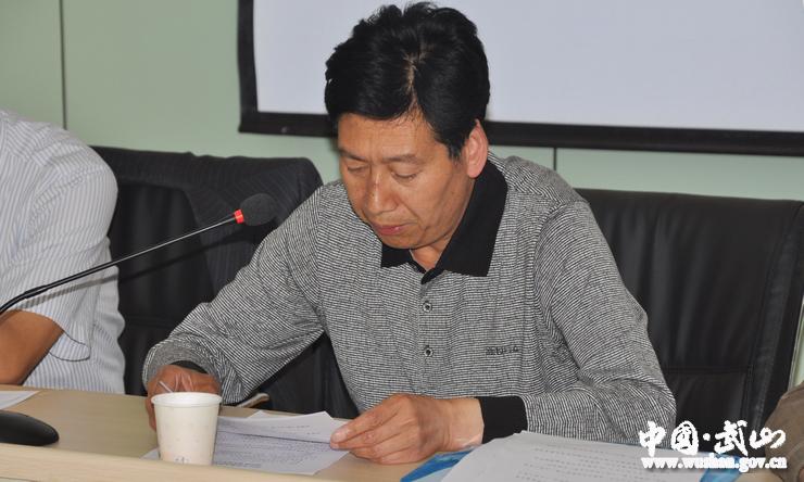 县教体局局长石尚荣宣读《武山县考区及考点组织机构人员名单的通知》