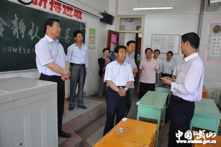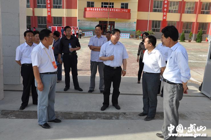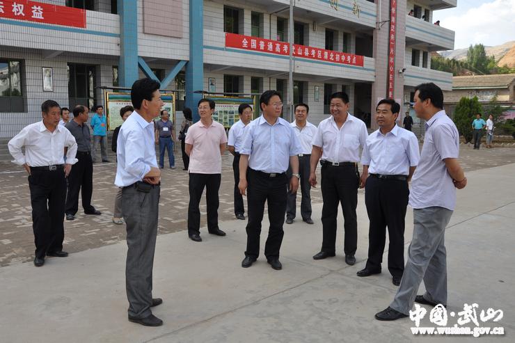 6月6日下午,武山县委书记张建杰,县人大常委会主任王永宏,县长索鸿宾,县政协主席颉卫星,县委常委、宣传部长赵子洲,县人大常委会副主任李亚平,副县长丁晓来,县政协副主席骆育喜和市高考巡视组一同检查高考考务工作。