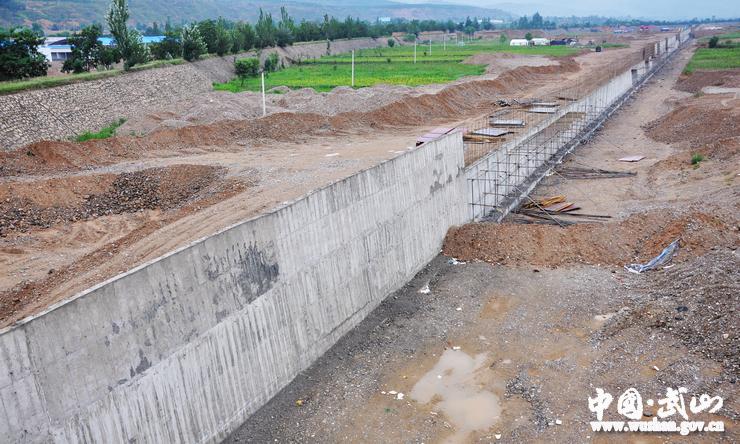 正在建设中的洛门镇渭河提防工程
