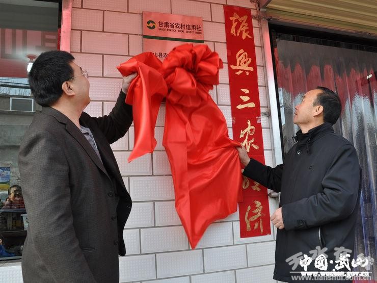 (甘肃银监局天水分局局长王宏和武山县人大副主任兰仓宝揭牌)