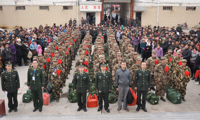 12月9日,武山县举行新兵入伍欢送仪式。首批80名新兵身穿绿军装,胸佩大红花,奔赴千里之外的军营,踏上了保家卫国的征程。