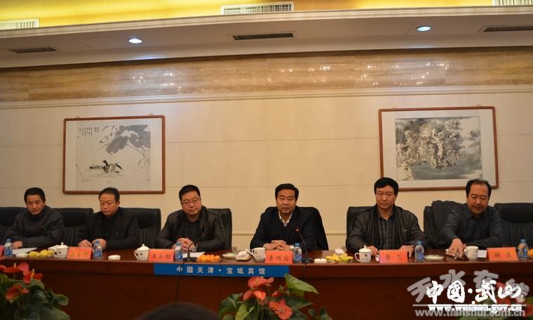 1月11日,武山县委副书记、县长索鸿宾和县委常委、组织部长王永刚、副县长常飞带领县政府办、扶贫办、财政局、旅游局负责人,赴天津宝坻区走访慰问,向对口帮扶县区带去了全县人民的新春祝福和良好祝愿。天津宝坻区委、区政府在宝坻宾馆召开座谈会,热烈欢迎武山慰问团一行,区委常委、常务副区长李森阳和区长助理冯义及相关部门负责人参加了会谈。