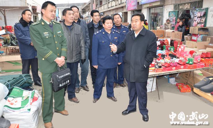 年关已至,新春在望。节日市场供应是否能满足市民需求、物价是否稳定、公共场所安全生产各项措施是否落实到位,带着这些问题,1月17日下午,武山县长索鸿宾先后深入城关镇、洛门镇各重点市场、就春节期间安全生产、市场监管、食品安全、交通秩序、社会治安、环境整治等工作进行了检查。他强调,各相关部门要切实履行职责,着力保障民生,努力营造和谐氛围,让群众在平安祥和的气氛中迎接龙年新春的到来。