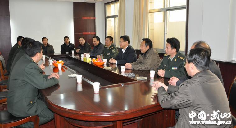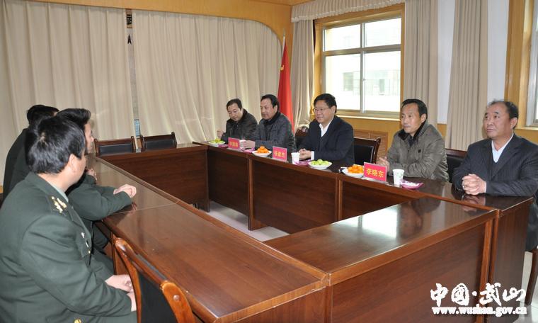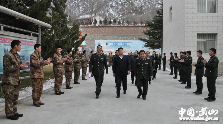 军民共建一家亲,拥政爱民鱼水情。1月17日,在龙年春节即将来临之际,武山县委书记张建杰,县委常委、人武部长王仓和,县委常委、政法委书记李晓东,县委常委、副县长辛国海带领县委办、民政局等单位负责人,先后深入驻武部队和县人武部进行走访慰问,向广大官兵送去美好的新春祝福,同时也带去武山县四大组织和47万人民对人民子弟兵的深情厚谊和良好祝愿。