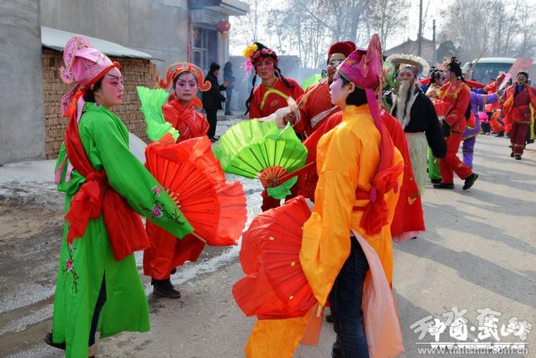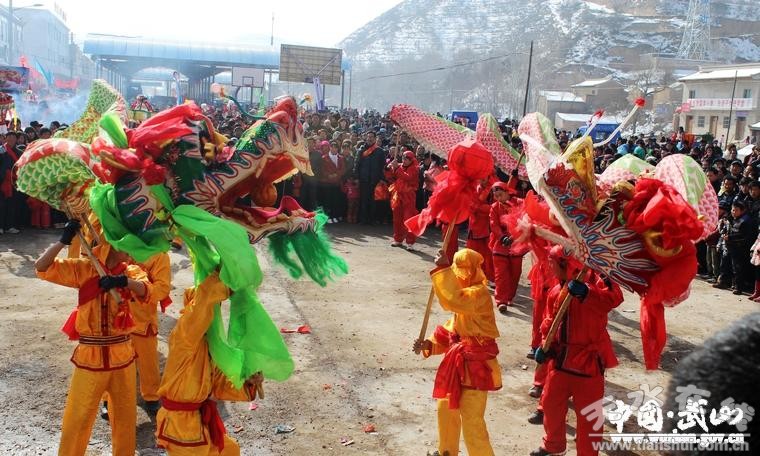 春节期间的武山,到处呈现一派喜庆祥和的气氛,四邻八乡的村民都组织社火队,敲锣鼓,踩高跷,划旱船,舞雄狮,耍龙灯,欢欢喜喜扭秧歌,红红火火闹新春。