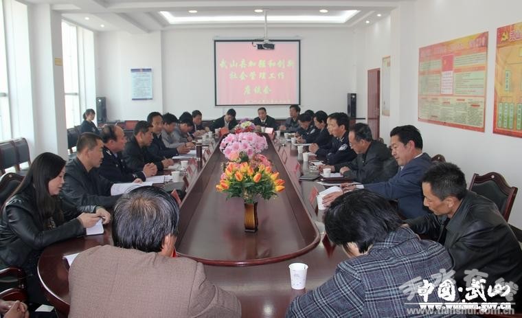 3月27日下午,武山县委常委、政法委书记李晓东主持召开了武山县加强和创新社会管理工作汇报座谈会。县人大常委会副主任邓茂宗应邀出席了会议;县法院、县检察院、县公安局、县司法局、县交警大队班子成员,县信访局、县人社局、县民政局、县卫生局等单位负责人参加了会议。