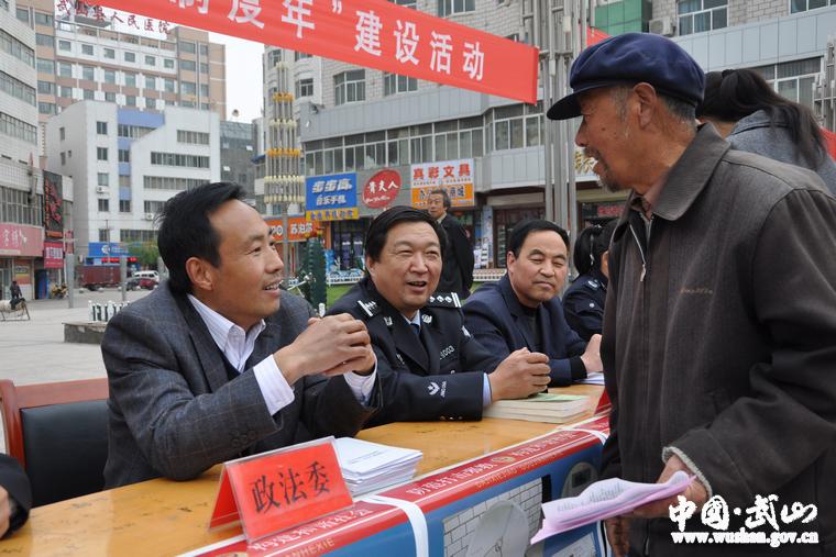 为进一步加强和创新社会管理工作,推动“矛盾化解制度年”建设活动深入开展,4月19日,武山县委政法委结合近期正在开展的“法律服务进万家”大型集中宣传教育活动,在县城宁远广场开展了大接访活动,现场处理群众来访案件。县委常委、政法委书记李晓东及县法院、检察院、公安局、司法局、交警队等政法单位负责人参加了大接访活动。