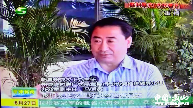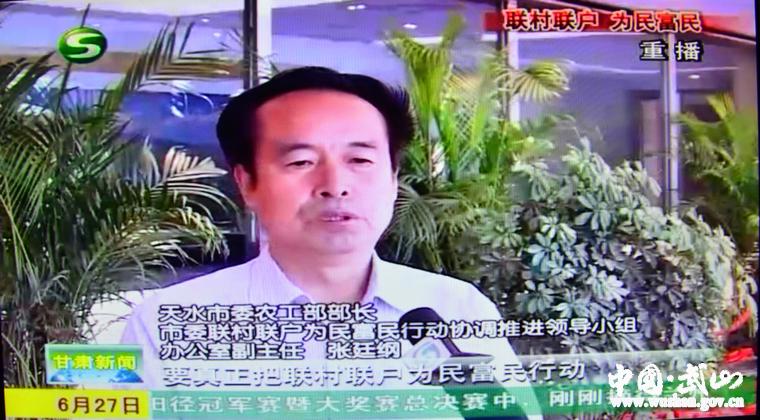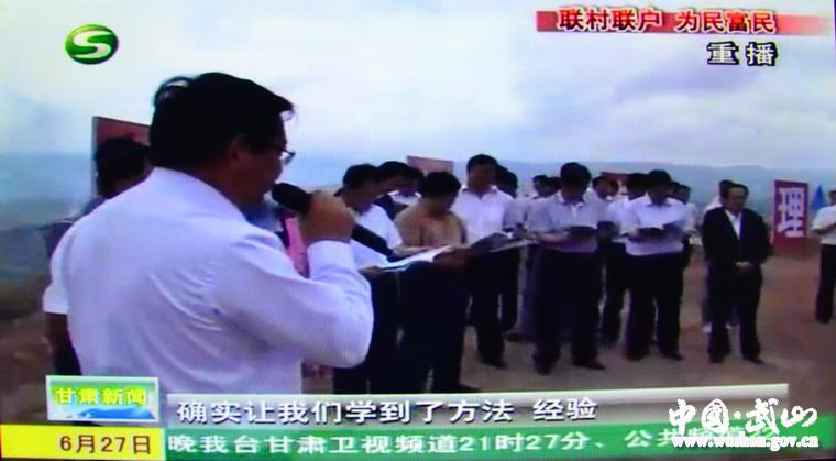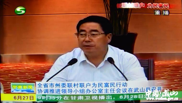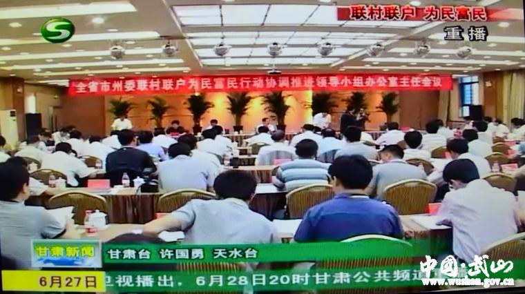 6月27日18时30分,甘肃卫视新闻频道《甘肃新闻》播报了全省市州委联村联户为民富民行动协调推进领导小组办公室主任会议在武山召开。