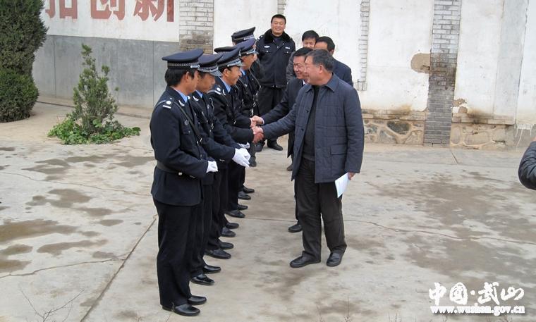 11月9日,甘肃省综治委铁路护路联防领导小组办公室常务副主任郭在礼一行,在天水市委政法委副书记、综治办主任、护路办主任李景春,武山县委常委、政法委书记李晓东的陪同下,对武山县2012年度铁路护路联防工作进行了检查考核。郭在礼一行深入到武山县贺店护路队,观看了贺店护路队员的汇报演练,实地查看了护路队员的工作、生活、食居情况,查阅了基础台账和队员巡逻、值勤值班记录。