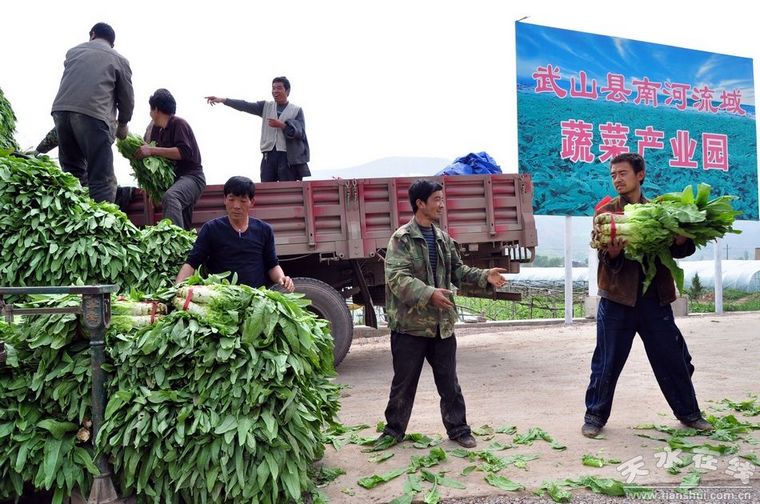 该县在渭河及其支流建成了6大无公害蔬菜基地和11个蔬菜科技示范园区,形成了以日光温室、普通大棚、地膜覆盖和露地蔬菜协调发展,高、中、低档并举,特色、优质齐抓的发展格局。全县建成金陇、绿源等170多家蔬菜加工、贮藏、保鲜、运输以及肥料供应等农产品龙头企业,武山蔬菜集团公司的成立和良好运作为武山蔬菜的增值、转化注入了新的活力。2012年借农业部命名武山为全国蔬菜产业重点县的东风,该县隆重举办了中国甘肃(武山)高原夏菜产销对接会和2012中国天水·武山蔬菜博览会,签订蔬菜及农产品购销协议32个,协议投资额达到11.74亿元。目前,全县蔬菜种植面积达到33万亩,总产量86万吨,总产值13亿元。蔬菜收入占到了全县农民人均纯收入的50%以上。