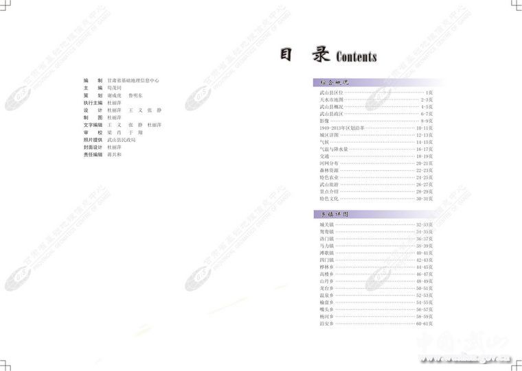 新出版的武山县《武山县地图册》分为县行政区划图、各乡镇行政区划图及城区图,图册以地图为载体、附带语言说明注释,通过图文并茂的形式展示近年来武山县各行各业取得的社会建设重大成果,较全面地反映了全县行政区划、界线、地名、水系、农业、交通、旅游等自然状况和社会信息的变化,并另附有旅游信息汇总、风光集锦等。该图册将使区划地名工作更好地为县委、县政府决策提供依据,为城市新规划和城乡一体化建设提供直观形象的基础地图信息,更好地服务于广大人民群众,服务于社会经济和公共事业发展。
