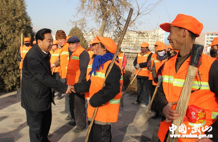 索鸿宾来到环卫工人中间与大家亲切握手,向他们祝贺新年,感谢他们为城市环境整洁优美所付出的辛勤劳动。索鸿宾深情地说:“干净舒适的城市环境,离不开广大环卫工人的辛勤工作,大家辛苦了,是你们的辛勤劳动给广大市民创造了舒适、安逸的生活和工作环境,我们代表县委、县政府和广大市民感谢大家为全县环卫工作做出的贡献,祝大家新春愉快,阖家幸福。”