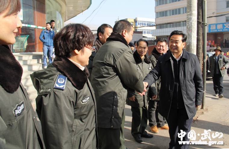 在县综合行政执法局东关执勤点,索鸿宾亲切看望了坚守工作岗位的城管队员,代表广大市民向他们不辞劳苦,为创造优美、舒适、有序的市容环境所付出的辛勤劳动表示衷心感谢,并希望他们在新的一年里再接再励,继续发扬无私奉献的精神,立足本职、爱岗敬业,为建设美丽武山做出新的更大贡献。