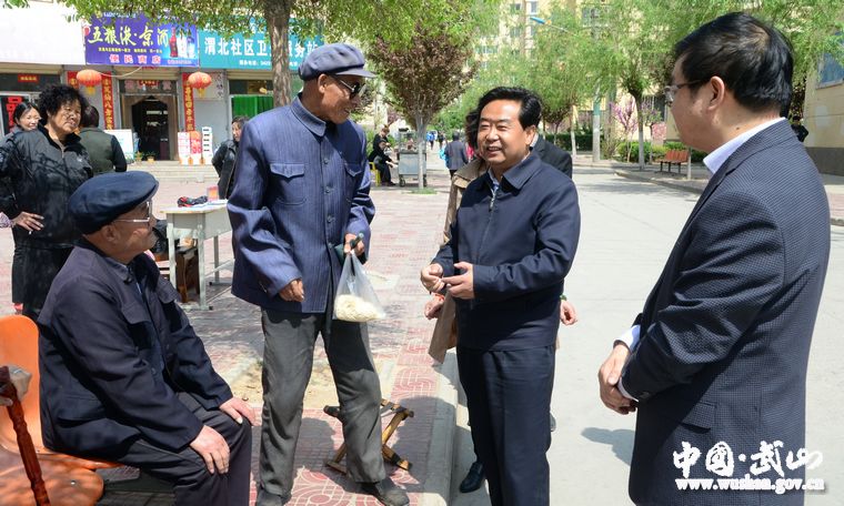 在渭北社区安居园小区,索鸿宾来到群众中,和社区老同志亲切交谈,仔细询问他们的身体和生活情况,详细介绍了在职党员进社区报到参加志愿服务工作开展背景及进展情况,并就开展好教育实践活动和活动中需要重点解决的问题、在职党员进社区开展公益服务等工作征求意见建议。