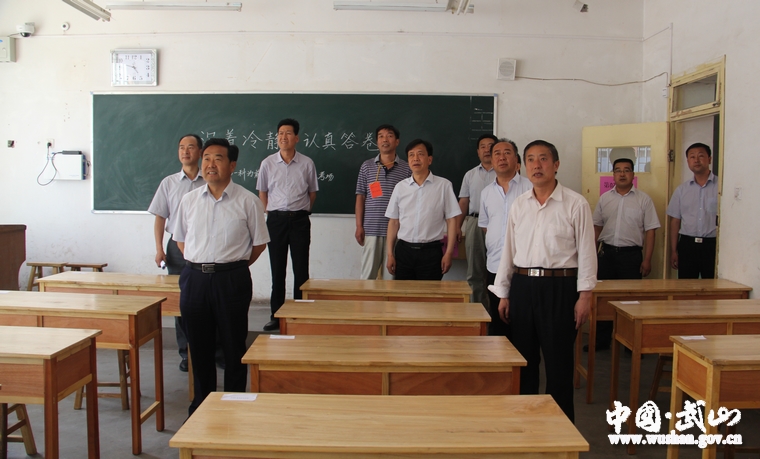 6月6日下午,武山县委书记索鸿宾,县人大常委会主任王永宏,县委副书记、县长马勤学,县委常委、宣传部长陈鸿,县人大常委会副主任谢勇,副县长张炜,县政协副主席赵小强,县政协副主席、政府办主任郭远带领相关部门负责人对2014年全县高考考务工作准备情况进行检查指导。