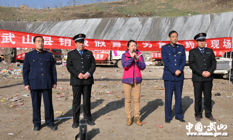 县政府副县长李菊霞及食药监、公安、工商、质检等部门负责人参加集中销毁行动。