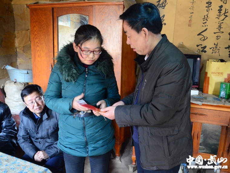 李世荣一行先后深入到鸳鸯镇鸳鸯村,洛门镇百泉村,四门镇四门村,温泉乡聂河村,走访慰问了贫困大学生王英、李玲、王平和聂宏斌,亲手为他送上了2015年“武山县圆梦助学基金”500元慰问金和慰问品,并送去了党和政府的温暖和关怀之情。