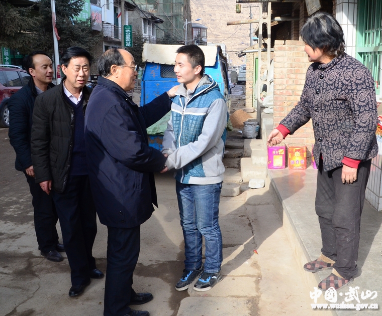 1月29日,在新春佳节即将来临之际,天水市人大常委会原主任、市关工委主任、基金会理事会副理事长李世荣,天水市教委原主任、基金会理事会副理事长兼秘书长杨兴胜带领甘肃武山县圆梦助学基金会成员,来武山县慰问受助贫困大学生。县政府副县长甘志国及县教体局、信用联社负责人一同慰问。