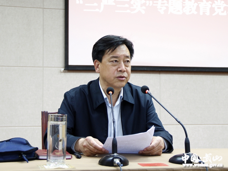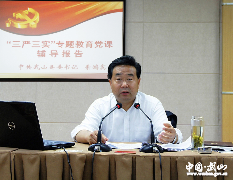 就扎实开展全县开展“三严三实”专题教育工作,索鸿宾要求,全县各级党委(党组)要切实落实主体责任,认真谋划安排,精心组织实施,把规定工作做实做深做细。要抓实专题党课、专题学习研讨、专题民主生活会和组织生活会、整改落实和立规执纪四个关键,特别是专题党课要做到“三个讲清楚”,促进对“三严三实”丰富内涵的深刻理解,找准“不严不实”问题的症结,一项一项抓好整改落实,推动践行“三严三实”要求制度化、常态化、长效化。要坚持领导带头与整体推动并重、坚持思想教育与追责惩戒并重、坚持建章立制与刚性执行并重、坚持集中整治与常态长效并重,充分发挥县四大组织领导的带头表率作用,引导各级干部从思想深处解决好信仰信念问题,有效解决各类“不严不实”问题。要把专题教育同学习贯彻习总书记系列重要讲话精神、抓好教育实践活动整改落实、协调推进“四个全面”战略布局和当前重点工作有机结合起来,切实从“严”上要求自己、向“实”处谋事着力,不断取得作风建设新成效,努力开创武山转型升级发展新局面。
