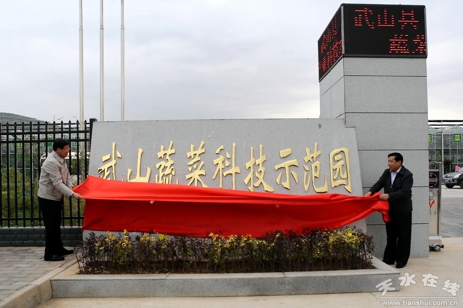 5月25日,在2015中国天水·武山蔬菜博览会即将开幕之际,武山县举行蔬菜科技示范园揭牌仪式。省农牧厅党组书记、厅长康国玺,市委副书记、市政协主席宋尚有出席揭牌仪式并为园区揭牌。