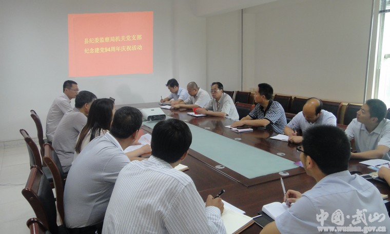 为庆祝中国共产党成立94周年,进一步坚定机关党员干部的理想信念,增强党性观念,强化党的纪律意识,7月1日,武山县纪委监局机关党支部开展了形式多样的建党纪念活动。县纪委副书记韩有刚同志要求每一名党员干部要认真践行“三严三实”要求,自觉学习党章,用党章规范自己的一言一行,立足自身岗位职责,想在前、干在前,将思想和行动统一到全县党风廉政建设和反腐败工作中来。