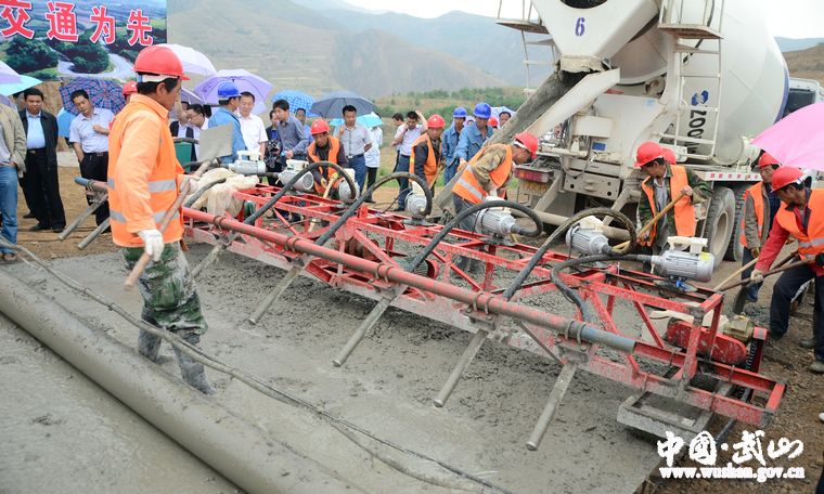近年来,武山县把农村公路建设作为扶贫攻坚的基础性、先导性工程,举全县之力开展农村公路建设大会战,特别是去年全省交通扶贫攻坚农村公路建设现场会在武山县召开以来,我们改革创新,克难奋进,把公路修到了产业基地、田间地头、群众门口。全县建成农村公路2250公里,通车总里程达2618公里,15个乡镇的350个行政村通了水泥路或沥青路,占行政村总数的86.2%,今年将实现全覆盖。在具体工作中,我们做到了三个结合、三个创新和三个到位: