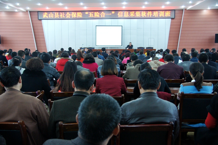 11月11日,武山县召开“五险合一”信息采集软件培训会,全县机关事业单位和企业社保经办人员240多人参加,会上,城居保中心、医保中心和资金中心负责人对“五险合一”信息采集工作的政策法规进行了讲解说明,东软公司工程技术人员详细讲解了“五险合一”社会保险信息系统数据录入的方法。