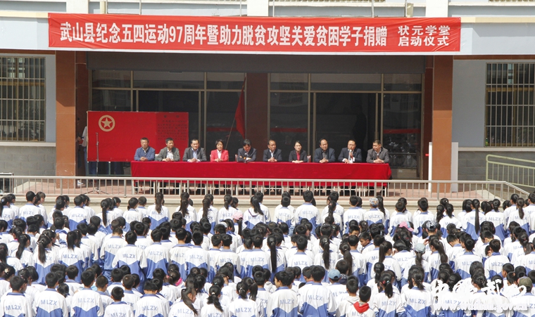 4月29日,为隆重纪念“五四”运动97周年、 助力脱贫攻坚关爱贫困学子,由共青团武山县委联合县教体局及状元学堂教育基金会在马力中学举行捐赠启动仪式。县委常委、组织部长何敬忠,县人大常委会副主任蔡永彦,县政府副县长唐玉芳,县政协副主席钟玉红出席启动仪式。马力镇、团县委、教体局等单位负责人参加活动。