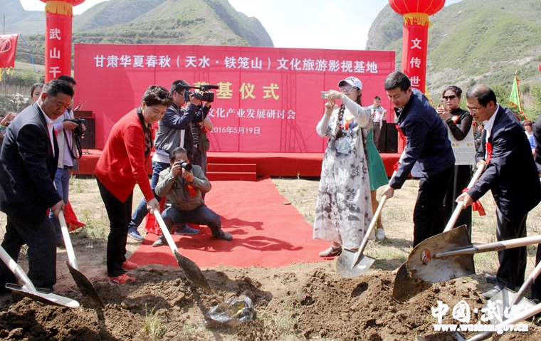 5月19日,武山县举行甘肃华夏春秋(天水·铁笼山)文化旅游影视基地项目建设奠基仪式。县委副书记赵永生、县人大常委会副主任李亚平、县政府副县长甘志国、县政协副主席郭远,高楼乡及县委宣传部、交通、环保、文广、招商、旅游等单位负责人,项目建设单位、监理单位员工及部分企业客户代表参加奠基仪式。