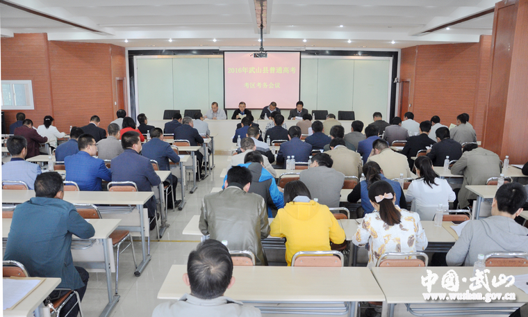 5月27日, 武山县召开2016年普通高考武山考区考务会议,安排部署各项考务工作。县政府副县长、县招委主任甘志国出席会议并讲话,县招委会各成员单位和各考点负责人参加会议。