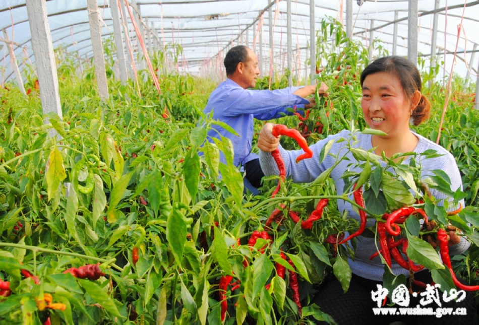一走进武山大地,到处都是田畴纵横,菜香满园,白色的塑料大棚布满了河谷两岸,一辆辆满载鲜菜的运输车辆来回穿梭,展现出武山蔬菜产业规模化发展的辉煌气势,一茬茬绿色鲜菜撑开了农民的“钱袋子”。县十三次党代会以来,武山县始终坚持把蔬菜作为促进农民脱贫致富的区域首位产业,深入实施 “1234”蔬菜产业提升工程,全县蔬菜种植面积已达到38万亩,产量106万吨,产值突破22亿元,蔬菜收入已占到农民人均纯收入的48%。武山成为远近闻名的“中国韭菜之乡”、国家级蔬菜标准化示范县、全国绿色农业示范县、全国首批设施蔬菜标准园创建县、全国蔬菜产业重点县,蔬菜产业成为全县近20万菜农增收致富的主导产业。
