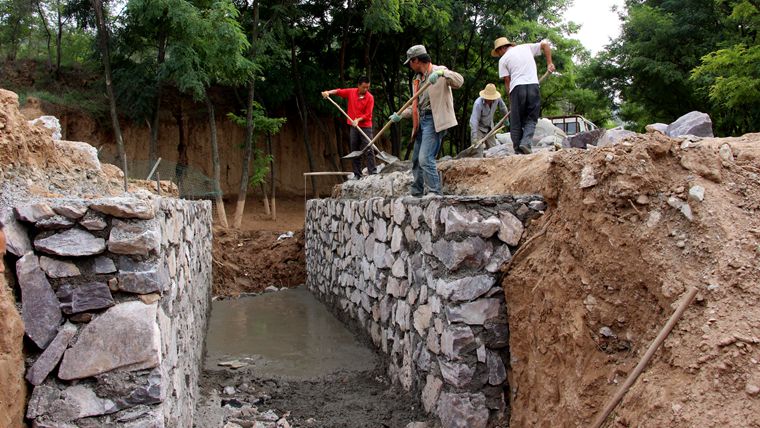 群众合力修建桥涵
