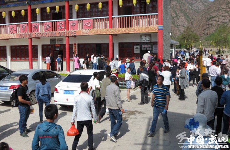金秋十月,秋高气爽,水帘洞景区迎来了旅游高峰,来自全国各地的游人成群结队,进福门、走福路、过福桥、登福山,览摩崖大佛,观丹霞奇景。 “十一”假期前两天,景区共接待游客 26295人次,与去年同期相比,增长了28%。按照统计情况,这两天景区的客源主要来自兰州、天水、西安、银川、西宁等周边地区。