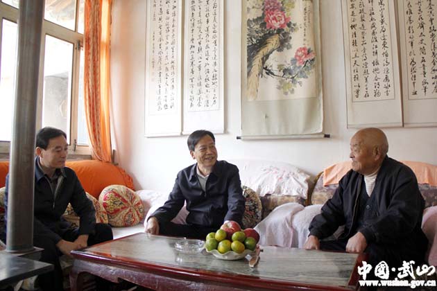 樊荣华老人,长期从事文化工作,于诗书画均有较深刻的造诣和研究。在樊荣华老人家中,马勤学详细询问老人的身体和家庭状况,愉快畅谈奋力建设宜居宜业宜游武山的美好前景,同时就精准脱贫、文化旅游产业发展、项目建设等工作进行了深入交流。
