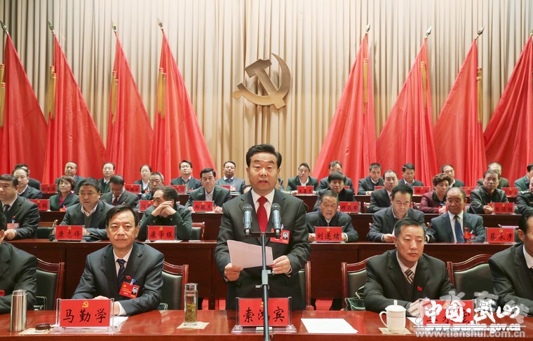 索鸿宾说,全面实现这次党代会确定的宏伟蓝图,既是全体代表的共同责任,也是全县共产党员和人民群众的共同心愿,更是我们义不容辞的神圣使命。全县上下必须迅速行动起来,全力贯彻落实好党代会精神,力争宏伟目标早日实现。一要认真抓好会议精神的学习宣传。动员全县上下切实把思想和行动统一到党代会作出的决策部署上来,把智慧和力量凝聚到大会确定的目标任务上来,凝聚建设小康武山的强大合力。二要充分发挥各位代表的先锋模范作用。带头贯彻落实党代会精神,发挥好传帮带作用,紧密结合脱贫攻坚,带头联系帮扶贫困户,展示无愧于组织、无愧于人民的先锋风采。三要全力以赴抓好当前工作。以更严、更实的举措,持续抓好脱贫攻坚各项任务,特别是当前正在开展的“大走访、回头看”活动,确保不漏一村一户。要严格对照年初确定的目标任务,努力完成全年各项经济指标和工作任务。要加大民生保障力度,切实解决好与老百姓息息相关的实际问题。要加强党的建设,为全县经济社会发展提供坚强政治保障。