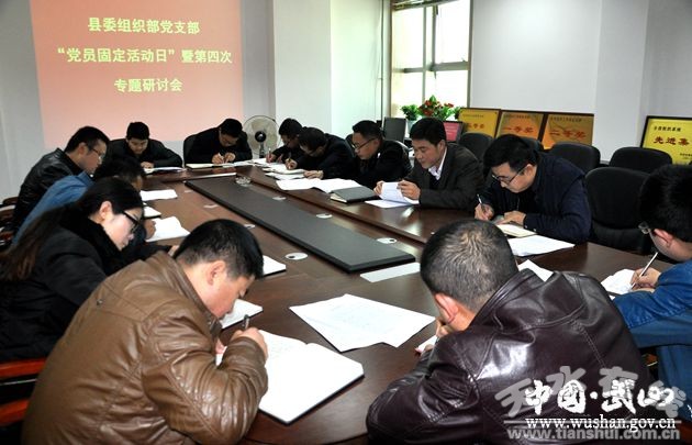 11月3日下午,武山县委组织部党支部召开党员大会,开展第九个“党员固定活动日”暨“两学一做”学习教育第四次专题研讨。