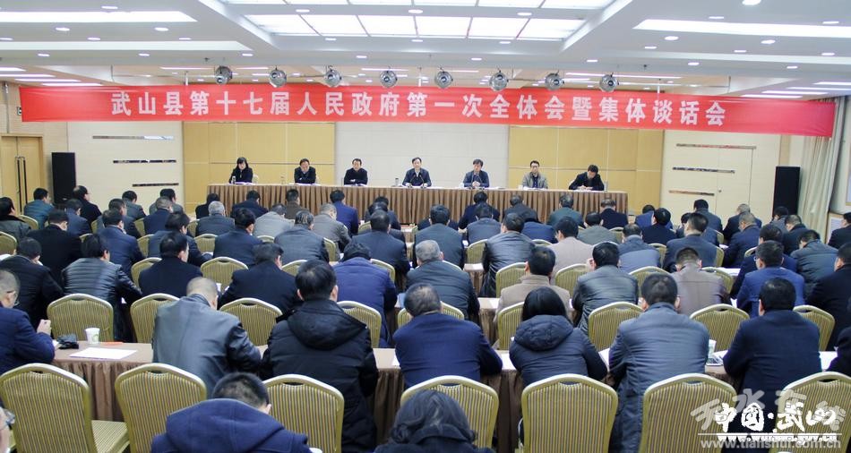 1月24日,武山县第十七届人民政府召开第一次全体会暨集体谈话会,传达贯彻省委全委会暨省委经济工作会议、省“两会”和省、市政府第一次全体会议精神,组织开展政府系统领导干部集体谈话,安排部署2017年及当前各项工作。武山县委副书记、县长马勤学出席会议并讲话,县委常委、副县长何敬忠主持会议,县政府班子全体成员和各乡镇政府、县政府各部门、各单位负责人,共计90多人参加会议。
