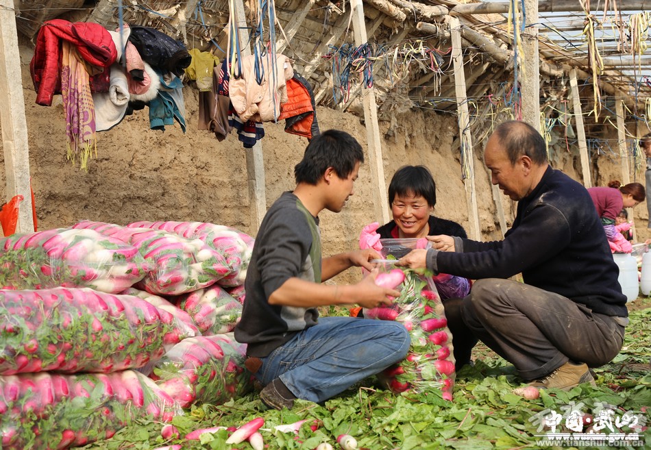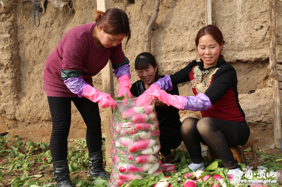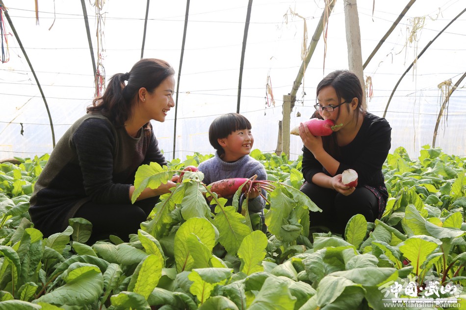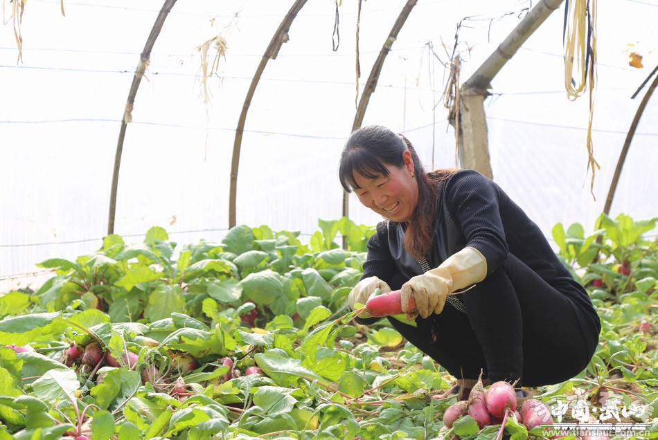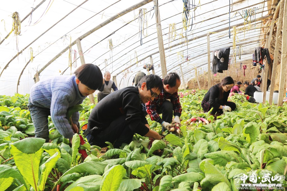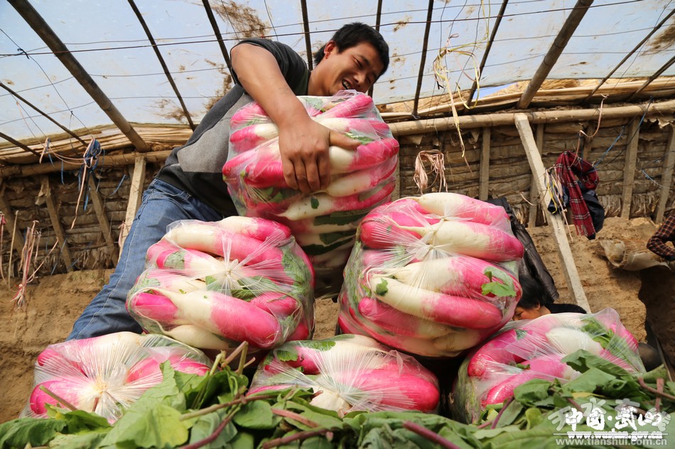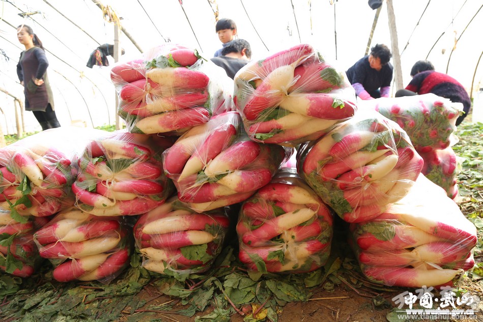 自精准扶贫精准脱贫工作开展以来,武山县坚持把产业扶贫作为促进群众脱贫致富的有力抓手,因地制宜扶持发展多元富民产业,特别是发挥渭河川道区日照充足、水资源丰富的优势,在新龙、曲里、下康、北街等村大力发展水萝卜等反季节蔬菜,引导群众更新品种,改进管理技术,实行无公害生产、包装式销售,有力提升了蔬菜生产质量和效益。今年水萝卜大量丰收,一亩大棚预计产量达8000斤,收入达2万元左右,助农脱贫增收效果明显。