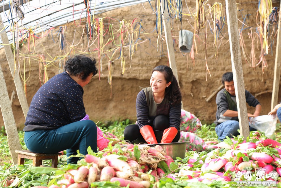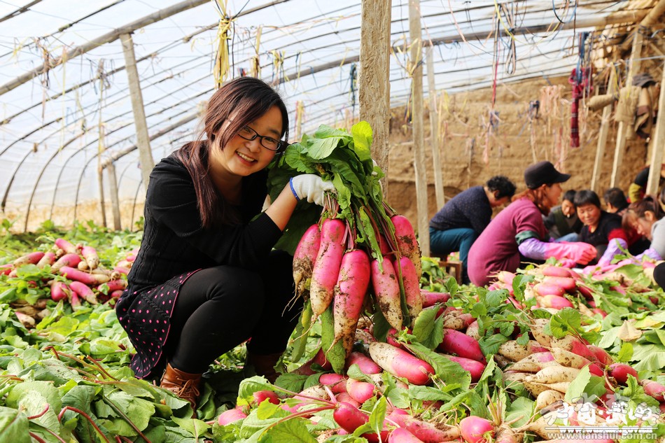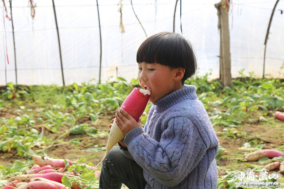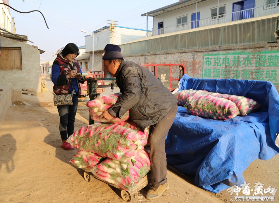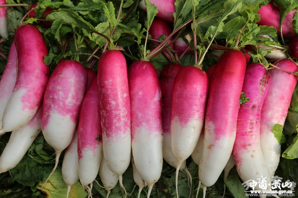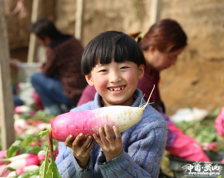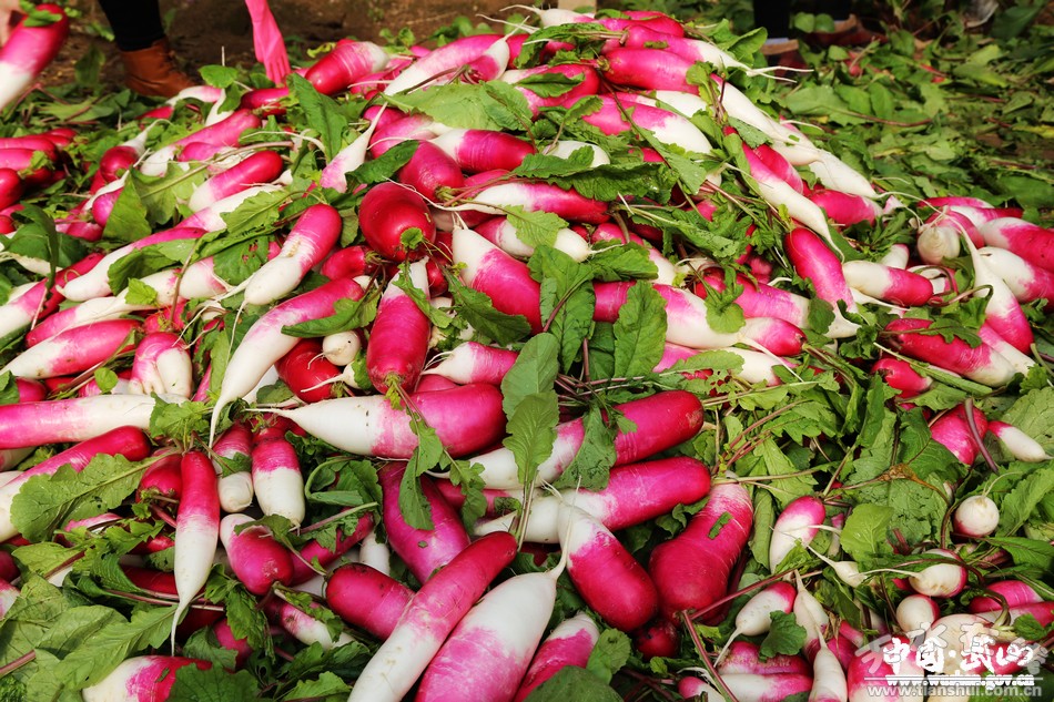 自精准扶贫精准脱贫工作开展以来,武山县坚持把产业扶贫作为促进群众脱贫致富的有力抓手,因地制宜扶持发展多元富民产业,特别是发挥渭河川道区日照充足、水资源丰富的优势,在新龙、曲里、下康、北街等村大力发展水萝卜等反季节蔬菜,引导群众更新品种,改进管理技术,实行无公害生产、包装式销售,有力提升了蔬菜生产质量和效益。今年水萝卜大量丰收,一亩大棚预计产量达8000斤,收入达2万元左右,助农脱贫增收效果明显。