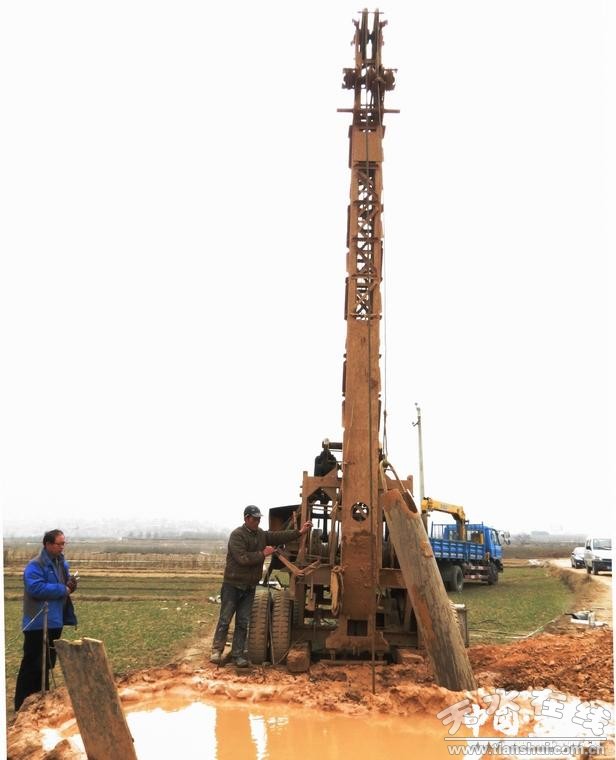 (从正月初七开始,施工人员就驻扎到工地上。据介绍,水井钻深已经达到43米,50米就出水了)
