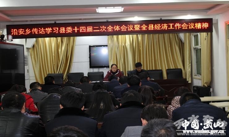 2月23日晚,沿安乡党委书记许鹏云主持召开全体干部会议,专题传达学习县委十四届二次全体会议暨全县经济工作会议精神。会上集体学习了县委书记索鸿宾关于2017年经济工作的重要讲话精神,深刻提炼索鸿宾书记提出的工作要求,传达学习县委副书记、县长马勤学关于2016年全县经济工作总结、当前和今年经济工作重点、经济社会发展任务的重要讲话精神。会议强调,全乡党员干部要学习好、宣传好、贯彻好全县经济工作会议精神,切实把思想认识统一,为实现2017年全县经济工作的目标任务出谋划策。同时,要结合全乡实际,学以致用,把学习贯彻全县经济工作会议精神与当前工作结合起来,对全乡2016年度工作进行全面梳理回顾,做好查漏补缺,认真谋划开展好2017各项重点工作。