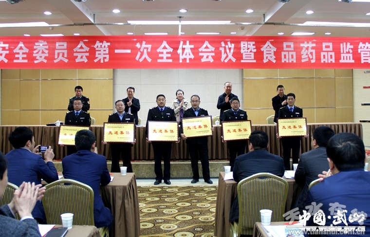 会议宣读了《武山县食品安全委员会关于表彰2016年度食品安全监管工作先进单位的决定》《武山县食品药品监督管理局关于表彰2016年度食品药品监管工作先进集体和食品药品监管先进工作者的决定》,并对获奖单位和个人进行了颁奖。城关镇、高楼乡、农业局、教体局分别作了交流发言。县食药监局负责人与各乡镇监管所、稽查局、检验检测中心及机关各股室签订了2017年度食品药品安全监管目标责任书。