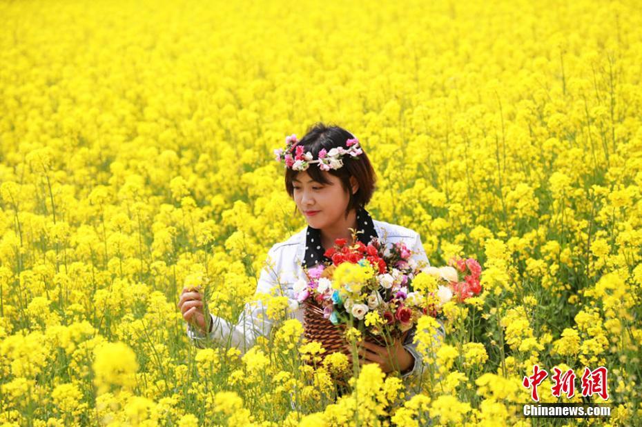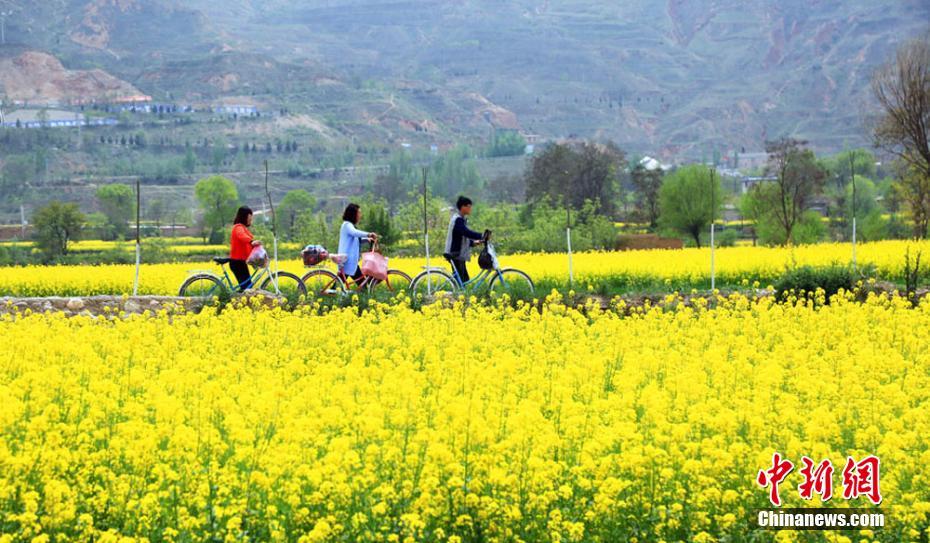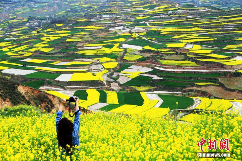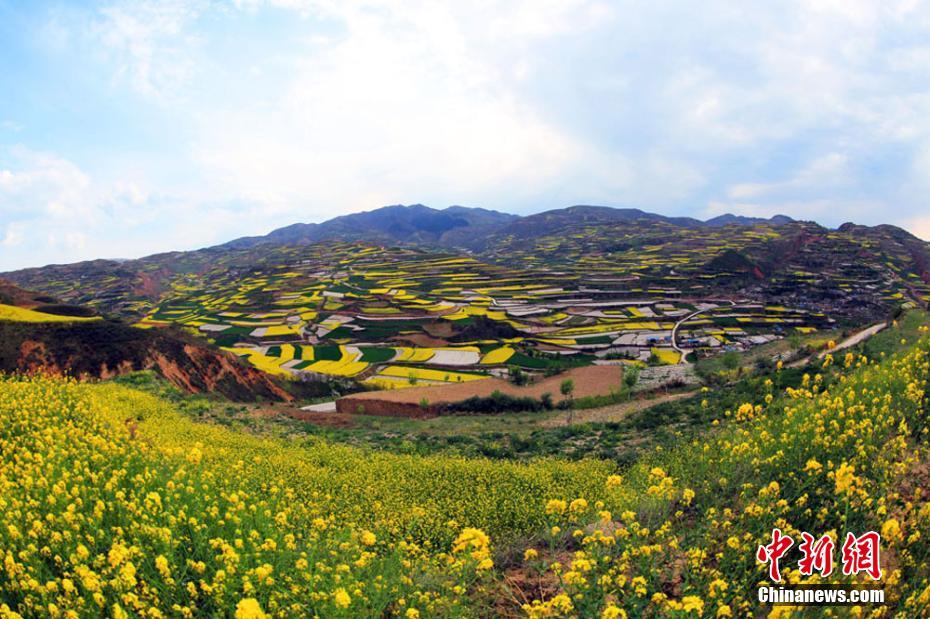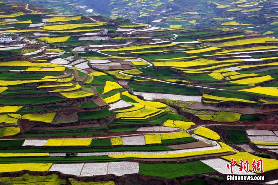 5月初,甘肃天水武山西梁漫山遍野的油菜花田和绿油油的冬小麦交错纵横,在川、塬、沟、坪上汇成一片,恍若一幅色彩明艳斑斓的油画。王建玉 摄